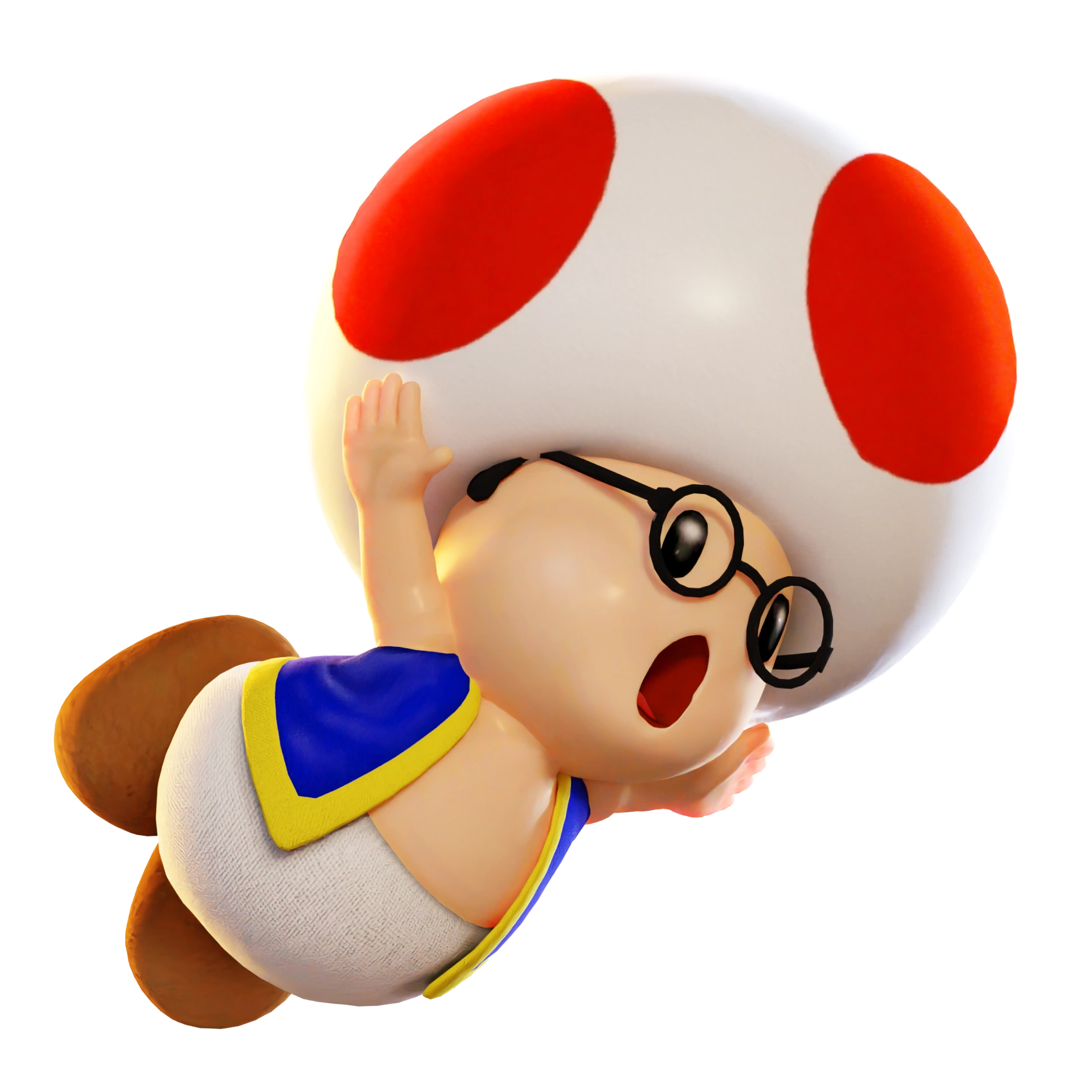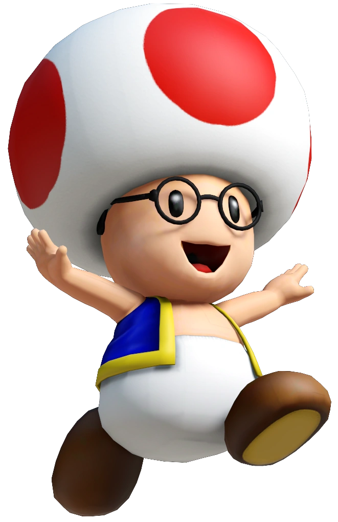 He is a dumb, young, glasses-wearing Toad kid who is also the Grandson of Toadsworth. He is often a victim in multiple situations, who doesn't even know what's going on. He is also shown to be suicidal and a nuisance towards others. Despite the abusive treatment, his facial expressions always gives a bright smile.