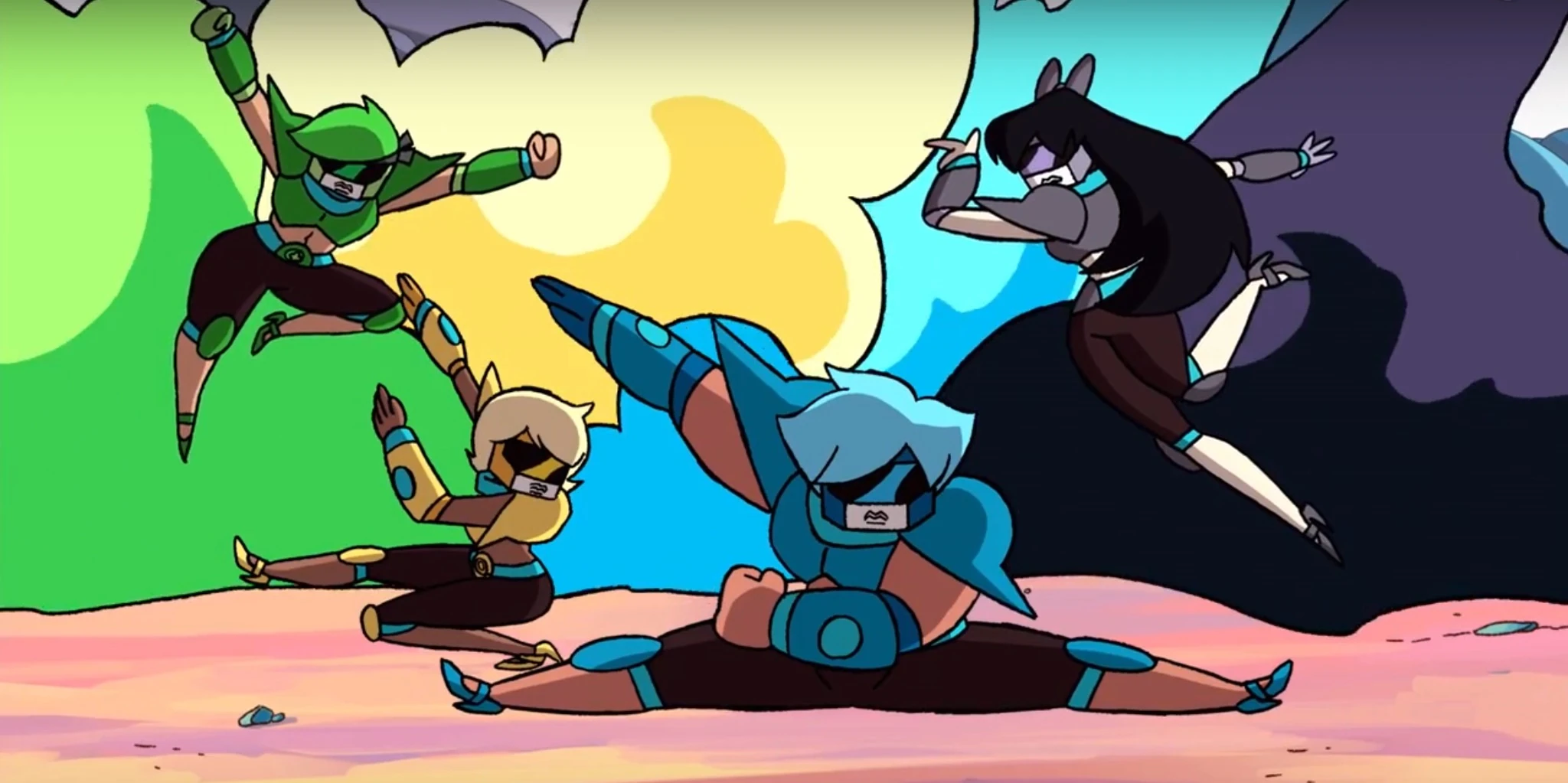 - The group pose they make is most likely a reference to the Power Rangers/Super Sentai franchise, as are their color-coded uniforms.