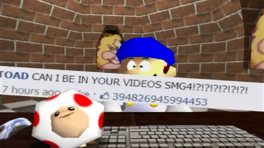 Toad, or Toad #232563465, is a major secondary character in the Bloopers. He is a sarcastic, yet immature character and he resides in Princess Peach's Castle, living with the rest of the main characters. Alongside Luigi, he is often the victim of Mario and SMG4's antics and crazy misadventures and is also occasionally subjugated by Peach.